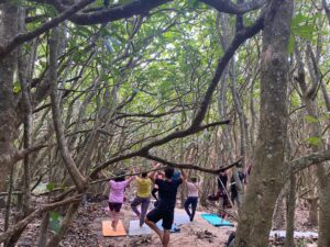Learn to surf with us, or if you already know how, improve your skills with our progressive lessons. Do yoga on our beautiful forest deck, on the beach or in our magical mangrove forest.